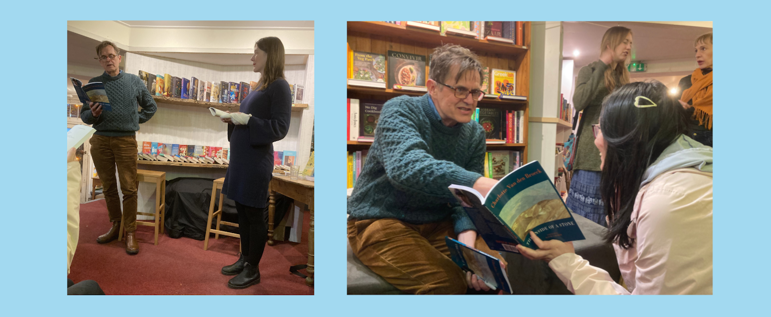- On Wednesday 12 March, presented the translation of ‘The Inside of a Stone’ at the local independent bookshop the Book Hive, chaired by fellow Bloodaxe poet Tiffany Atkinson and attended by 40 people. Both of Charlotte’s collections in English were for sale, and there was a lively discussion with audience members both during and after the event.